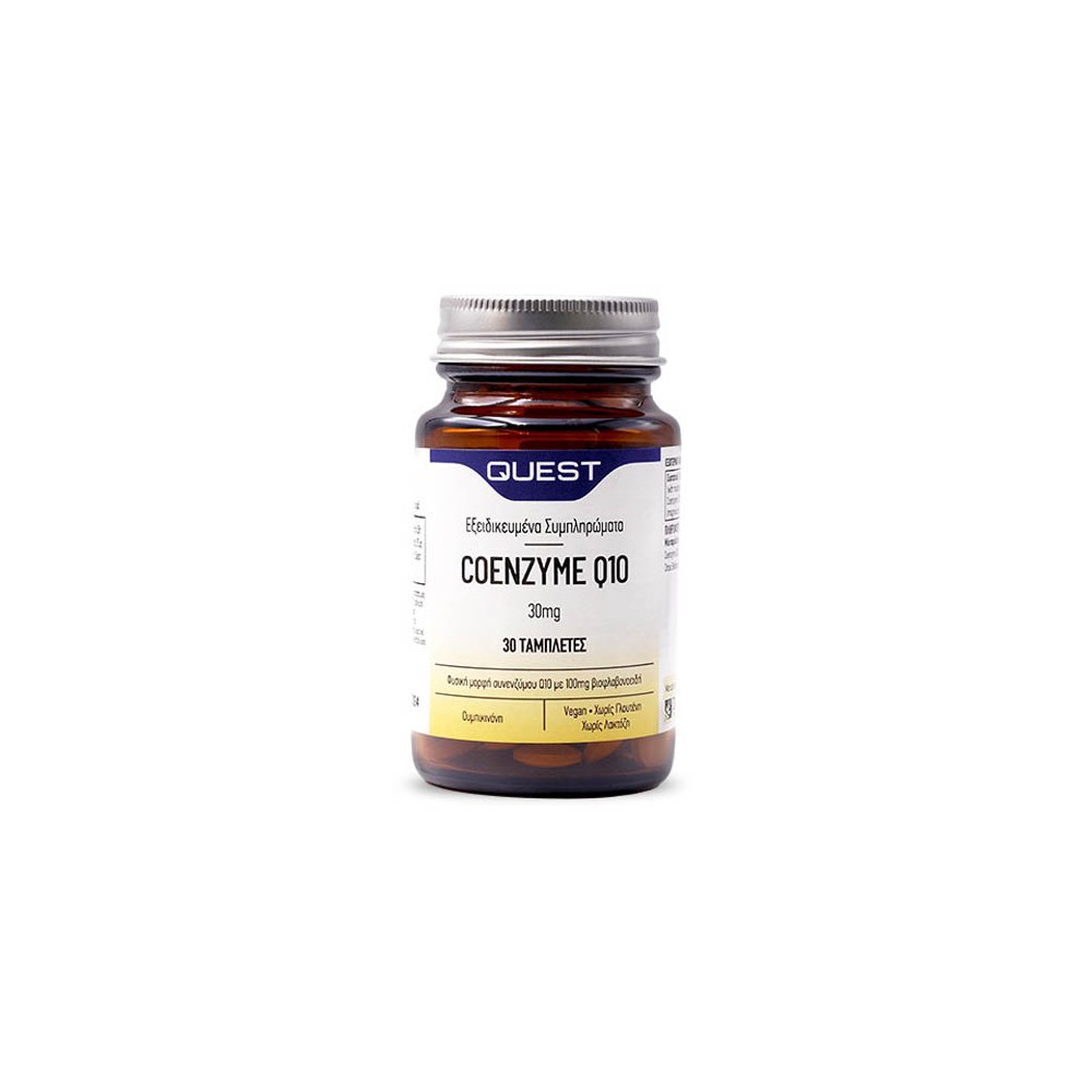 Το συμπλήρωμα διατροφής Coenzyme Q10 30mg της Quest παρέχει 30mg συνενζύμου Q10, μια ποσότητα κατάλληλη για όλους. Το συνένζυμο Q10 υπάρχει φυσιολογικά στα ανθρώπινα κύτταρα.