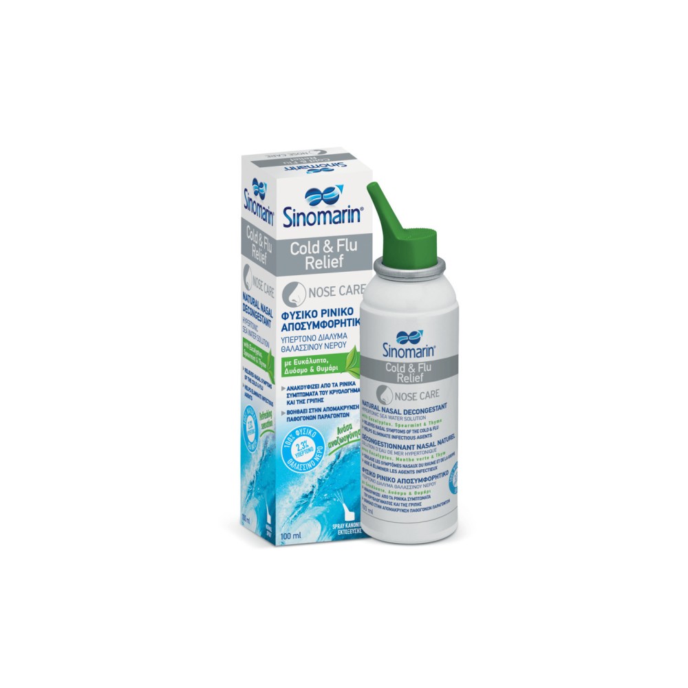 Η αποτελεσματικότητα του Sinomarin Cold & Flu Relief οφείλεται στην αποσυμφορητική δράση (μέσω ώσμωσης) του υπέρτονου διαλύματος θαλασσινού νερού (2,3% σε NaCl) καθώς και στις αντιφλεγμονώδεις & αντιμικροβιακές ιδιότητες και δράσεις στο ανώτερο αναπνευστικό σύστημα, των αιθέριων ελαίων ευκαλύπτου & δυόσμου καθώς και του εκχυλίσματος θυμαριού.