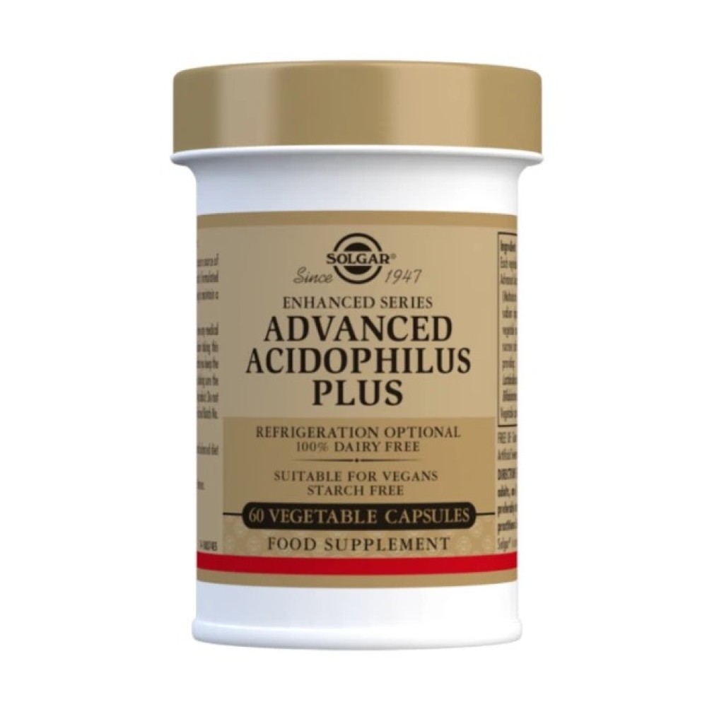 Ο συνδυασμός του Advanced Acidophilus Plus της Solgar αποτελεί μια προηγμένη προβιοτική φόρμουλα με ειδικό σύστημα μεταφοράς των φιλικών βακτηριδίων στον εντερικό σωλήνα, ώστε να επιτυγχάνεται η μέγιστη απορρόφησή τους από αυτόν.Το Advanced Acidophilus Plus θεωρείται χρήσιμο για τη διατήρηση της υγείας των εντέρων, σε περιπτώσεις διάρροιας, δυσκοιλιότητας, καντιδίασης, εντερικών αερίων, αλλά και σε περιπτώσεις που γίνεται χρήση αντιβιοτικών, αντισυλληπτικών και κορτικοστεροειδών. Συμβάλει στην αποκατάσταση της εντερικής χλωρίδας, στην ανακούφιση από τα συμπτώματα του ευερέθιστου εντέρου, αλλά γενικότερα και στην καλύτερη λειτουργία ολόκληρου του οργανισμού.