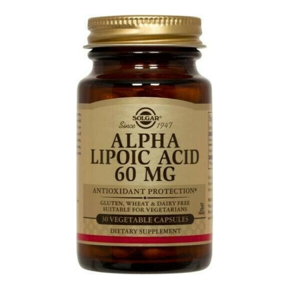 Συμπλήρωμα διατροφής της εταιρείας Solgar με Α-Λιποϊκό Οξύ (ALA), το οποίο αποτελεί σημαντικό συστατικό συνενζύμων, ενώ η αντιοξειδωτική του δράση βοηθά στην μείωση του οξειδωτικού στρες. Παράλληλα προστατεύει τον οργανισμό από τα τοξικά βαρέα μέταλλα κατά την κυκλοφορία του αίματος. Επίσης, μπορεί να βοηθήσει στη μείωση της γλυκόζης κατά τη διάρκεια του μεταβολισμού.Το Solgar® Alpha-Lipoic Acid 60 mg Vegetable Capsules περιέχει ένα λιπαρό οξύ που βρίσκεται από τη φύση στο σώμα. Είναι διαλυτό σε νερό και ιστούς λιπιδίων και ορισμένες φορές χρησιμοποιείται σε συνδυασμό με τις βιταμίνες C και Ε.Το σώμα παράγει μικρή ποσότητα Άλφα-Λιποϊκού Οξέος αλλά τα επίπεδα αυξάνονται ραγδαία με την κατανάλωση τροφών, όπως πράσινα λαχανικά και πατάτες, ή την πρόσληψη συμπληρώματος.