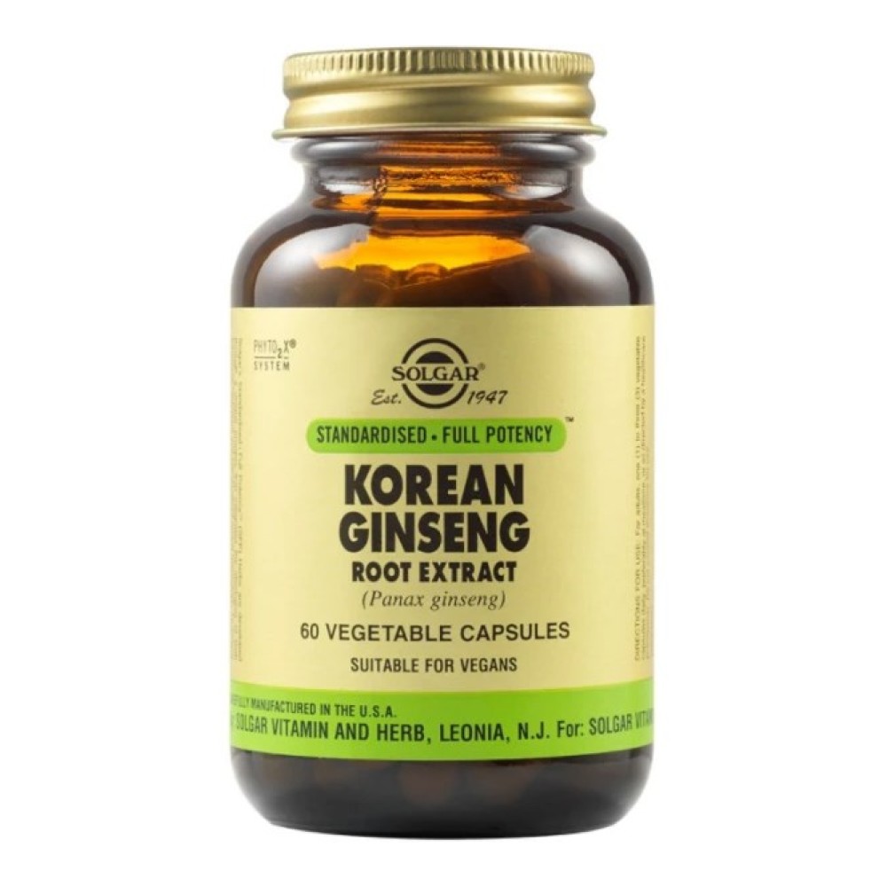 Panax ginseng Θεωρείται ως η πιο τονωτική μορφή Ginseng.Έχει προσαρμογενείς ιδιότητες, βελτιώνει την αντοχή στο σωματικό, διανοητικό και περιβαλλοντολογικό στρες. Είναι γενικό τονωτικό (κατά της κόπωσης και αδυναμίας) και ιδιαίτερα χρήσιμο σε αθλητές και δραστήρια άτομα. Βοηθάει επίσης στην ενδυνάμωση του κεντρικού νευρικού συστήματος.Σε φυτοκάψουλες. Κατάλληλο για vegans.KOREAN GINSENG 520mg veg.caps 50s Ανά 1 φυτοκάψουλα παρέχει: Ακατέργαστη ρίζα Korean Ginseng σε σκόνη 500mg Εκχύλισμα ρίζας Korean Ginseng σε σκόνη (4:1) (Panax ginseng-παραδοσιακή ρίζα Korean Ginseng Root) 20mg Δοσολογία: Λαμβάνετε 1-3 φυτοκάψουλες ημερησίως, κατά προτίμηση με τα γεύματα. KOREAN GINSENG ROOT EXTRACT veg.caps 60s Ανά 1 φυτοκάψουλα παρέχει: Ακατέργαστη ρίζα Korean Ginseng Root σε σκόνη 200mg Τιτλοδοτημένο εκχύλισμα ρίζας Korean Ginseng (Panax) (20mg [8%] ginsenosides) σε σκόνη 250mgΔοσολογία: Λαμβάνετε 1-3 φυτοκάψουλες ημερησίως, κατά προτίμηση με τα γεύματα.60 φυτοκάψουλες