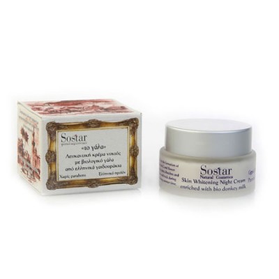 Sostar Λευκαντική κρέμα νύχτας προσώπου Το γάλα με βιολογικό γάλα γαϊδούρας για όλους τους τύπους δέρματος 50 ml
