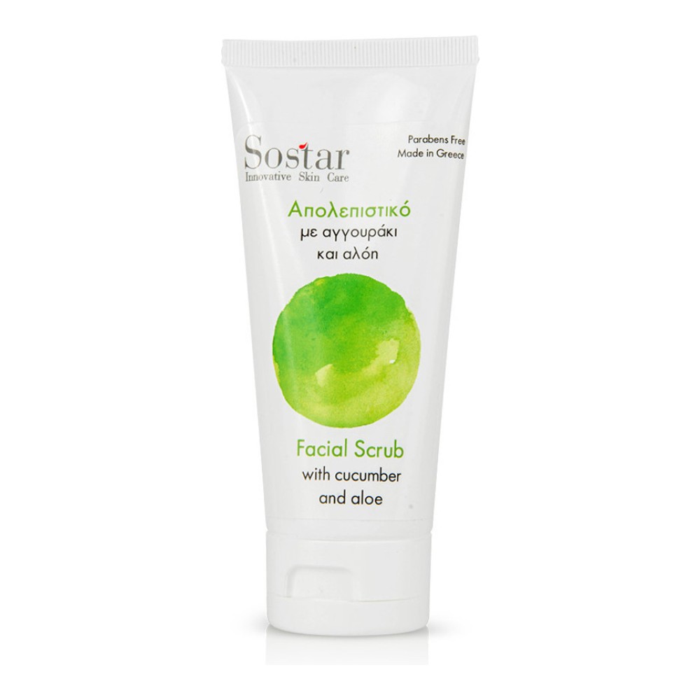 Λεπτόκοκκο απολεπιστικό προσώπου και λαιμού με εκχυλίσματα αγγουριού και αλόης. Καθαρίζει απαλά την επιδερμίδα χωρίς να δημιουργεί εκδορές. Η αλόη παρέχει καταπραϋντική δράση στην επιδερμίδα ενώ τα εκχυλίσματα απο αγγουράκι την αφήνουν δροσερή, απαλή και φρέσκια. Μπορεί να χρησιμοποιηθεί από όλους τους τύπους δέρματος.