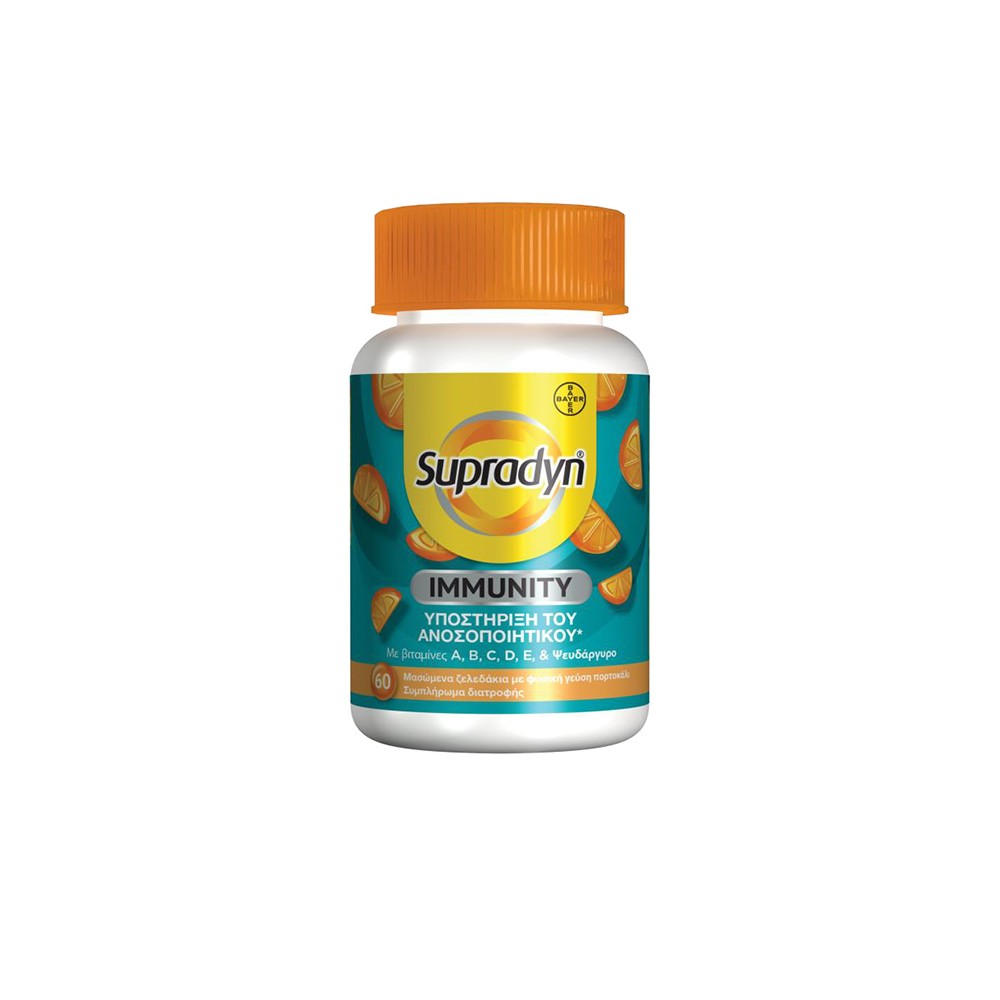 Το Supradyn® Immunity Gummies περιέχει: Βιταμίνη C, Βιταμίνη D, Ψευδάργυρο και 5 ακόμη Bιταμίνες (Βιταμίνη Ε, Ψευδάργυρος, Βιταμίνη Β6, Βιταμίνη Α, Βιταμίνη Β7 (Bιοτίνη), Βιταμίνη Β12)