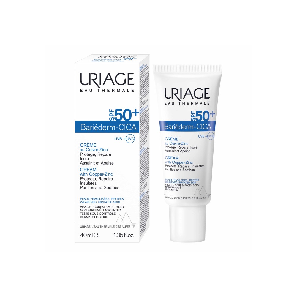 Uriage Bariederm Cica-Creme au Cu-Zn SPF50+ (40ml) - Κρέμα Ανάπλασης & Επανόρθωσης με Αντηλιακή Προστασία