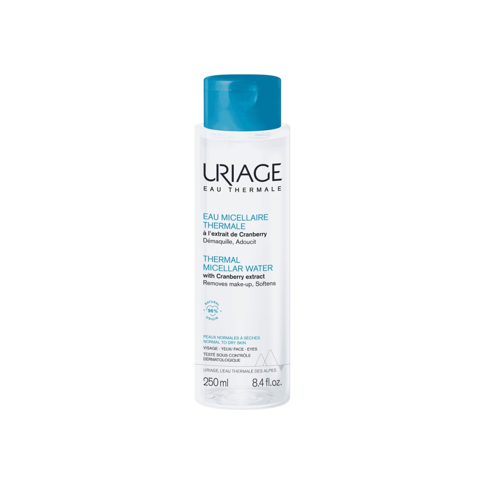 Εμπλουτισμένο με εκχύλισμα cranberry και ιαματικό νερό Uriage, αυτό το νερό micellar, ενυδατώνει το δέρμα, αφήνοντάς το απαλό και ελαστικό.