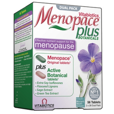 Το Menopace Plus της Vitabiotics είναι μια διπλή συσκευασία που περιλαμβάνει τις ταμπλέτες Menopace μαζί με δραστικές ταμπλέτες βοτάνων με φυτοοιστρογόνα για γυναίκες που υποφέρουν σε μεγάλο βαθμό από τα συμπτώματα της εμμηνόπαυσης και επιζητούν μια πιο δραστική ενίσχυση του οργανισμού τους. Οι ταμπλέτες Menopace περιέχουν βιταμίνες και μέταλλα, συστατικά που συμβάλλουν στη διατήρηση της υγείας και της ζωντάνιας των γυναικών πριν, κατά τη διάρκεια και μετά την εμμηνόπαυση, βοηθώντας στην υγεία και την καλή λειτουργία της καρδιάς, του ανοσοποιητικού, των οστών, των νεύρων, του δέρματος και του κόλπου. Κάθε δραστική ταμπλέτα βοτάνων του Menopace Plus περιέχει 100mg εκχυλίσματος ισοφλαβονών σόγιας, 250mg εκχυλίσματος φασκόμηλου και 50mg εκχυλίσματος σπόρων λιναριού που περιέχουν φυτοοιστρογόνα. Τα φυτοοιστρογόνα μπορούν σύμφωνα με μελέτες να συμβάλλουν στην ορμονική ρύθμιση και τη μετρίαση των εμμηνοπαυσιακών συμπτωμάτων. Οι ταμπλέτες βοτάνων περιέχουν επίσης πράσινο τσάι, το οποίο είναι μια εξαιρετικά πλούσια πηγή αντιοξειδωτικών ουσιών. Χαρακτηριστικά Σύνθεσης Δεν απαιτείται η παράλληλη λήψη κάποιας άλλης πολυβιταμίνης - Κατάλληλο για χορτοφάγους Δοσολογία & Οδηγίες Χρήσης Μια ταμπλέτα Menopace και μια δραστική ταμπλέτα βοτάνων την ημέρα με ή αμέσως μετά το κύριο γεύμα με ένα ποτήρι νερό ή κρύο ρόφημα. Η λήψη του μπορεί να συνεχιστεί και μετά την εμμηνόπαυση για όσο απαιτείται Μια ταμπλέτα Menopace παρέχει Βιταμίνη A (2500IU) 750μg Βιταμίνη D (ως D3 200IU) 5μg Βιταμίνη E (Φυσική Πηγή) 30mg Βιταμίνη C 45mg Βιταμίνη B1 (Θειαμίνη) 10mg Βιταμίνη B2 (Ριβοφλαβίνη) 5mg Βιταμίνη B3 (Νιασίνη) 20mg Βιταμίνη B6 10mg Φυλλικό Οξύ 500μg Βιταμίνη B12 9μg Βιοτίνη 30μg Παντοθενικό Οξύ 30mg PABA (Παρα-αμινοβενζοϊκό Οξύ) 25mg Σίδηρο 6mg Μαγνήσιο 100mg Ψευδάργυρο 15mg Ιώδιο 225μg Μαγγάνιο 0,5mg Χαλκό 1mg Χρώμιο 50μg Σελήνιο 100μg Εκχύλισμα Ισοφλαβονών Σόγιας Αποδίδει τα δραστικά συστατικά: Diadzein Glycetine Genistein 20mg 1,1mg 0,77mg 0,33mg Μια ταμπλέτα βοτάνων παρέχει: Εκχύλισμα Ισοφλαβονών Σόγιας Αποδίδει τα δραστικά συστατικά: Diadzein Glycetine Genistein 100mg 5,5mg 3,85mg 1,65mg Εκχύλισμα Φασκόμηλου 250mg Εκχύλισμα Πράσινου Τσαγιού 50mg Λιγνάνες Σπόρων Λιναριού 50mg Δεν περιέχει Συντηρητικά, τεχνητά χρώματα, γλουτένη, ζελατίνη, λίπη, φαρμακευτικές ουσίες ή ορμόνες.