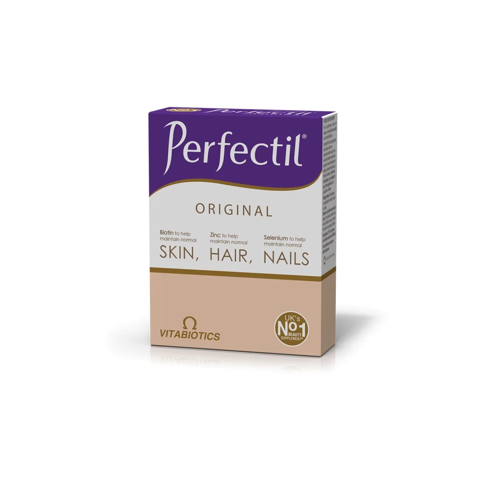 Το συμπλήρωμα διατροφής Perfectil της Vitabiotics παρέχει στον οργανισμό 22 θρεπτικά συστατικά όπως βιταμίνες, μέταλλα, L-κυστίνη και εκχύλισμα σταφυλιού, που σύμφωνα με μελέτες μπορούν να συμβάλλουν στην υγεία του δέρματος, των μαλλιών και των νυχιών.Το τυποποιημένο εκχύλισμα σταφυλιού, οι βιταμίνες C, Ε και τα καροτενοειδή, συστατικά ευρέως γνωστά για την αντιοξειδωτική τους δράση, προστατεύουν το δέρμα από οξειδωτικές βλάβες λόγω της ηλιακής ακτινοβολίας, του Νο 1 παράγοντα γήρανσης, χαλάρωσης και δημιουργίας ρυτίδων, προστατεύουν το κολλαγόνο και την ελαστίνη και βοηθούν στην καλή μικροκυκλοφορία του αίματος. Το παντοθενικό οξύ (Β5) έχει βρεθεί ότι μπορεί να βοηθήσει κατά της ξηροδερμίας. Η βιοτίνη διεγείρει την ανάπτυξη των κυττάρων και σχετίζεται με την ανάπτυξη της τρίχας και την υγεία του δέρματος. Απαραίτητα ιχνοστοιχεία όπως το μαγνήσιο και ο ψευδάργυρος, βοηθούν στο σωστό σχηματισμό της τρίχας και στην ανάπτυξη των μαλλιών, ενώ ο χαλκός είναι απαραίτητος για την αντοχή της τρίχας και το σχηματισμό του θύλακα της τρίχας. Ο ψευδάργυρος, ο σίδηρος και η L-κυστίνη είναι συστατικά που σύμφωνα με μελέτες συμβάλλουν στην υγεία και την ανάπτυξη των νυχιών.Το Perfectil είναι κατάλληλο για γυναίκες και άνδρες όλων των ηλικιών.