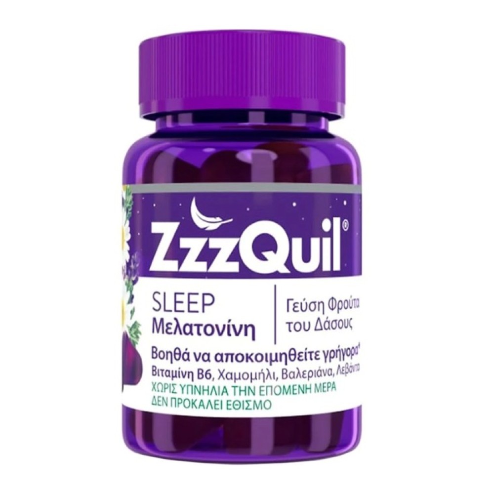 Το ZzzQuil Sleep είναι συμπλήρωμα διατροφής που έχει σχεδιαστεί για να βοηθήσει άτομα που έχουν σημάδια κούρασης και έλλειψης ενέργειας λόγω καθυστέρησης έλευσης ύπνου. Είναι ζελεδάκια που περιέχουν Μελατονίνη, η οποία σας βοηθά να αποκοιμηθείτε γρήγορα.