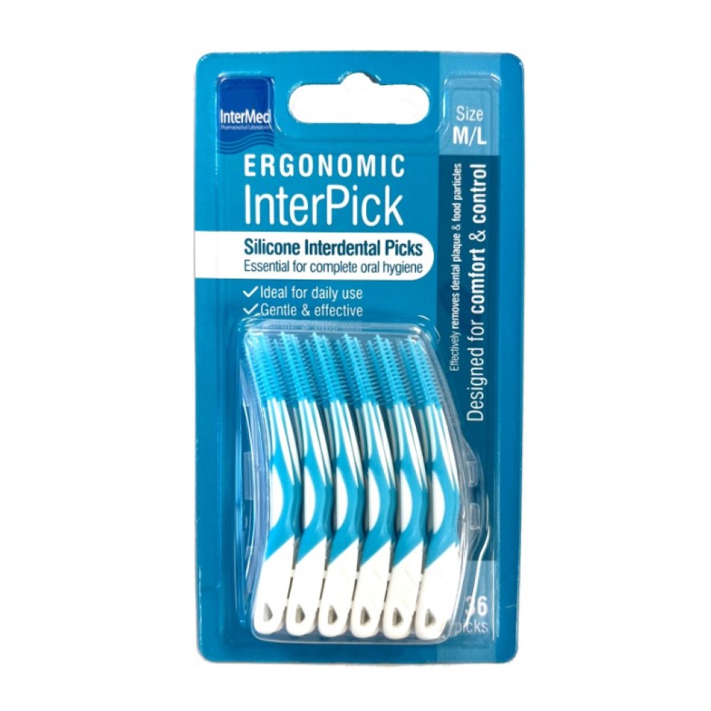 Τα Ergonomic Interpicks είναι ειδικά σχεδιασμένα σιλικονούχα μεσοδόντια βουρτσάκια, απαραίτητα για μια ολοκληρωμένη στοματική υγιεινή. Με απαλή σιλικονούχα κεφαλή και εργονομική, καμπυλωτή λαβή, απομακρύνουν αποτελεσματικά την οδοντική πλάκα και τα υπολείμματα τροφών από τα δυσπρόσιτα σημεία. Είναι απαλά και απόλυτα ασφαλή, ιδανικά για καθημερινή χρήση.