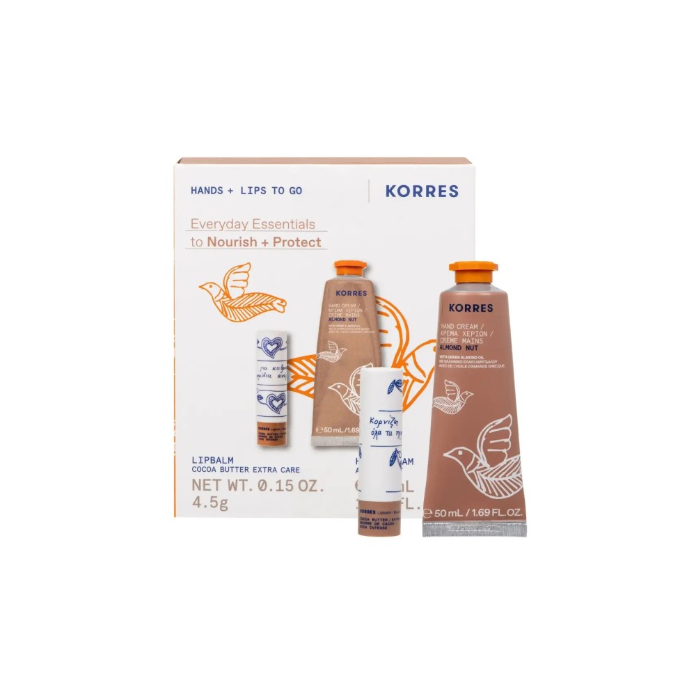 Korres Promo Hand & Lips To Go Almond Nut Hand Cream 50ml & Cocoa Butter Extra Care Lipbalm 4.5gr