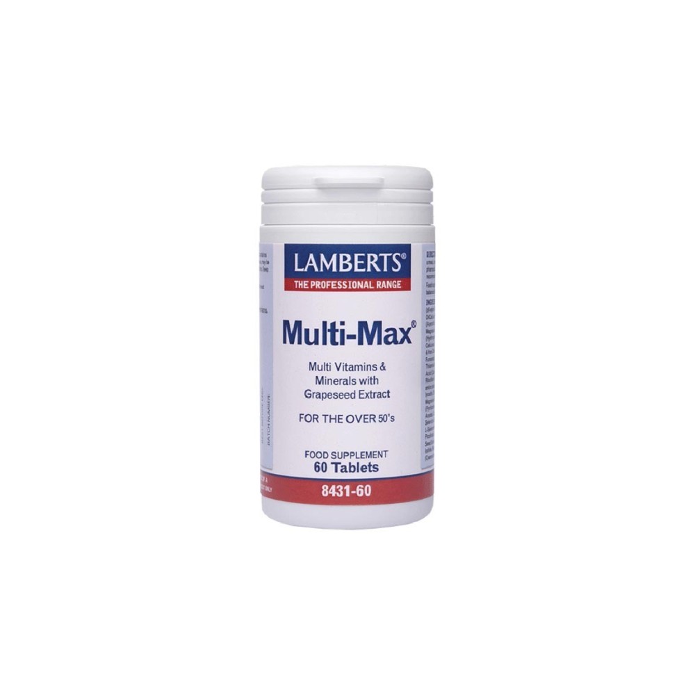 Αποτελεί μία από τις πιο ολοκληρωμένες πολυβιταμίνες που κυκλοφορούν στην δοσολογία της μιας ταμπλέτας ημερησίως. Η συγκεκριμένη φόρμουλα παρέχει το σύνολο των πιο σημαντικών μικροθρεπτικών συστατικών σε αρκετά υψηλά επίπεδα. Μεταξύ αυτών περιλαμβάνει σελήνιο και χρώμιο, 2 πολύ σημαντικά μέταλλα, τα οποία συχνά δεν περιέχονται ή περιέχονται σε μικρές ποσότητες σε άλλες πολυβιταμινούχες φόρμουλες. Επίσης παρέχει ικανοποιητικά επίπεδα βιταμινών Κ και D κάτι που αντανακλά στην υγεία των οστών. Συγκεκριμένα η βιταμίνη D παρέχεται στα συνιστώμενα επίπεδα για άτομα τα οποία εκτίθενται για μικρό χρονικό διάστημα στην ηλιακή ακτινοβολία. Τέλος παρέχει υψηλά επίπεδα φολικού οξέος και βιταμίνης Β12 κάτι πολύ σημαντικό για την υγεία του καρδιαγγειακού συστήματος μέσω του ελέγχου των επιπέδων της ομοκυστεΐνης στο αίμα. Αυτό που διαφοροποιεί την φόρμουλα Multi Max Advance από παρόμοια σκευάσματα που κυκλοφορούν στην αγορά είναι η περιεκτικότητά της σε πανίσχυρες αντιοξειδωτικές ουσίες. Συγκεκριμένα, περιέχει πράσινο τσάι, ένα από τα πιο ευρέως γνωστά αντιοξειδωτικά( σε επίπεδα που αντιστοιχούν σε ένα φλιτζάνι φρέσκου πράσινου τσαγιού) και λουτεΐνη η οποία είναι γνωστό ότι συμβάλλει στην υγεία των οφθαλμών. Όσον αφορά στην λουτεΐνη περιέχεται σε 2mg ανά ταμπλέτα, ένα σημαντικό επίπεδο, κατά πολύ υψηλότερο από τα επίπεδα λουτεΐνης που περιέχονται σε άλλες πολυβιταμινούχες φόρμουλες που κυκλοφορούν στην αγορά για άτομα άνω των 50 ετών. Τέλος, η Multi Max Advance, παρέχει υψηλής δραστικότητας εκχύλισμα κουρκουμίνης (Turmeric)σε επίπεδα που αντιστοιχούν σε ένα κουταλάκι γλυκού του μπαχαρικού. Η δοσολογία αυτή της κουρκουμίνης είναι η ίδια με αυτή που έχει χρησιμοποιηθεί σε πολλές επιστημονικές δημοσιεύσεις που αφορούν στον ευεργετικό ρόλο που διαδραματίζει (η κουρκουμίνη) στην διατήρηση της υγείας των ατόμων που ακολουθούν Ανατολική διατροφή.Ταμπλετοποίηση με:Cellulose, Tablet Coating (Hydroxypropyl Methylcellulose, Glycerin, Colours: Titanium Dioxide & Iron Oxides), Silicon Dioxide, Stearic Acid, Crosslinked Cellulose Gum, Magnesium Stearate.Χρόνος αφομοίωσης: Λιγότερο από 1ώρα.Κατάλληλο για χορτοφάγους.Αλλεργίες: Καμία.:Δεν πρέπει να λαμβάνεται από έγκυες ή θηλάζουσες γυναίκες.Αυτό το προϊόν περιέχει σίδηρο, του οποίου αν γίνει κατάχρηση, μπορεί να είναι βλαβερό για τα μικρά παιδιά. Φυλάξτε τα σε σημείο ασφαλές από τα παιδιά.Να φυλάσσεται σε δροσερό και ξηρό περιβάλλον και να προφυλάσσεται απτό φως.