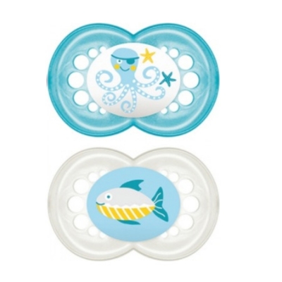 *Τα σχέδια είναι ενδεικτικά και αλλάζουν τακτικά. Παρακαλούμε επιλέξτε σύμφωνα με το φύλο του παιδιού ή υποδείξτε το στη φόρμα παραγγελίας. Εάν υπάρχει ιδιαίτερη προτίμηση στο σχέδιο σημειώστε το επίσης και θα προσπαθήσουμε ανάλογα με τη διαθεσιμότητα να σας εξυπηρετήσουμεMam Original Ορθοδοντική Latex Χταποδάκι Μπλε/Μπεζ 6m+ 2τμχ