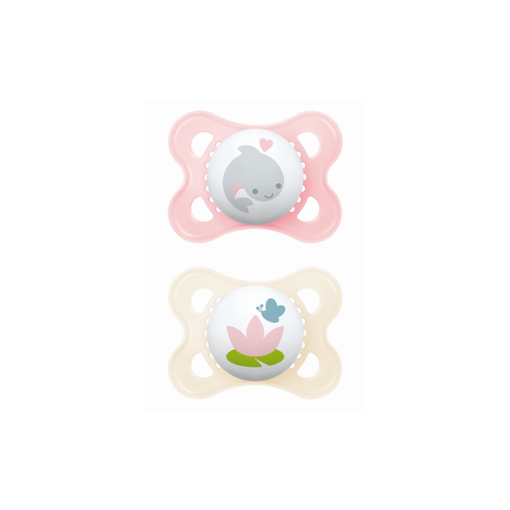 Mam Ορθοδοντικές Πιπίλες Καουτσούκ Original Δελφίνι & Ροζ Λουλούδι για 2-6 μηνών 2τμχ