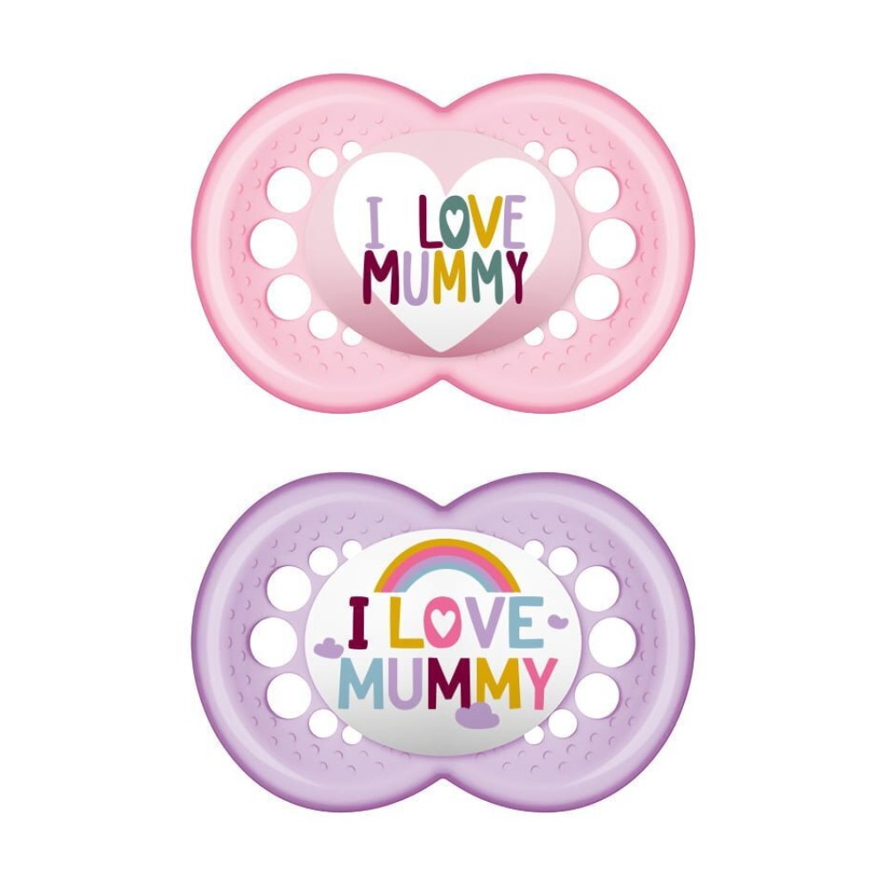 Mam Πιπίλες Σιλικόνης ''I Love Mummy'' για 6-16 μηνών 2 τεμάχια Ροζ/Μωβ