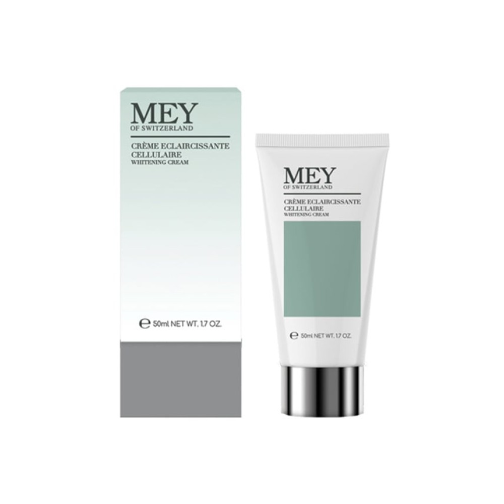 Η MEY Crème Eclaircissante Cellulaire δρα στα βαθύτερα στρώματα της επιδερμίδας, προλαμβάνει τη δημιουργία πανάδων και κηλίδων, ενώ ταυτόχρονα βοηθά στον αποχρωματισμό των ήδη υπαρχόντων. Περιέχει ένα σύμπλεγμα δραστικών συστατικών (arbutin και sucrose dilaurate-pea extract), το οποίο αποδεδειγμένα εμποδίζει την παραγωγή μελανίνης προωθώντας τη λεύκανση του δέρματος.