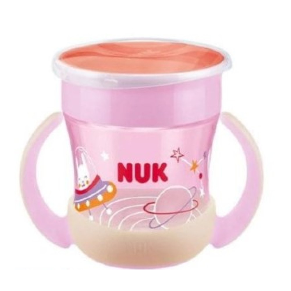 Το NUK Mini Magic Cup επιτρέπει ακόμη και στα πιο μικρά παιδιά να πίνουν όπως τα μεγαλύτερα. Το περιμετρικό χείλος εκμάθησης 360°υποστηρίζει και μαθαίνει στο μωρό σας να πίνει από όλες τις πλευρές, σαν να πίνει από κανονικό ποτήρι. Η «μαγική» διαφορά: το ποτηράκι αποτρέπει τις διαρροές, χάρη στον δίσκο σιλικόνης που σφραγίζει το καπάκι από μέσα. Έτσι, το να πίνουν γίνεται παιχνιδάκι για τα παιδιά: το παιδί σας αρκεί να ασκήσει πίεση με το στόμα στο χείλος του ποτηριού.