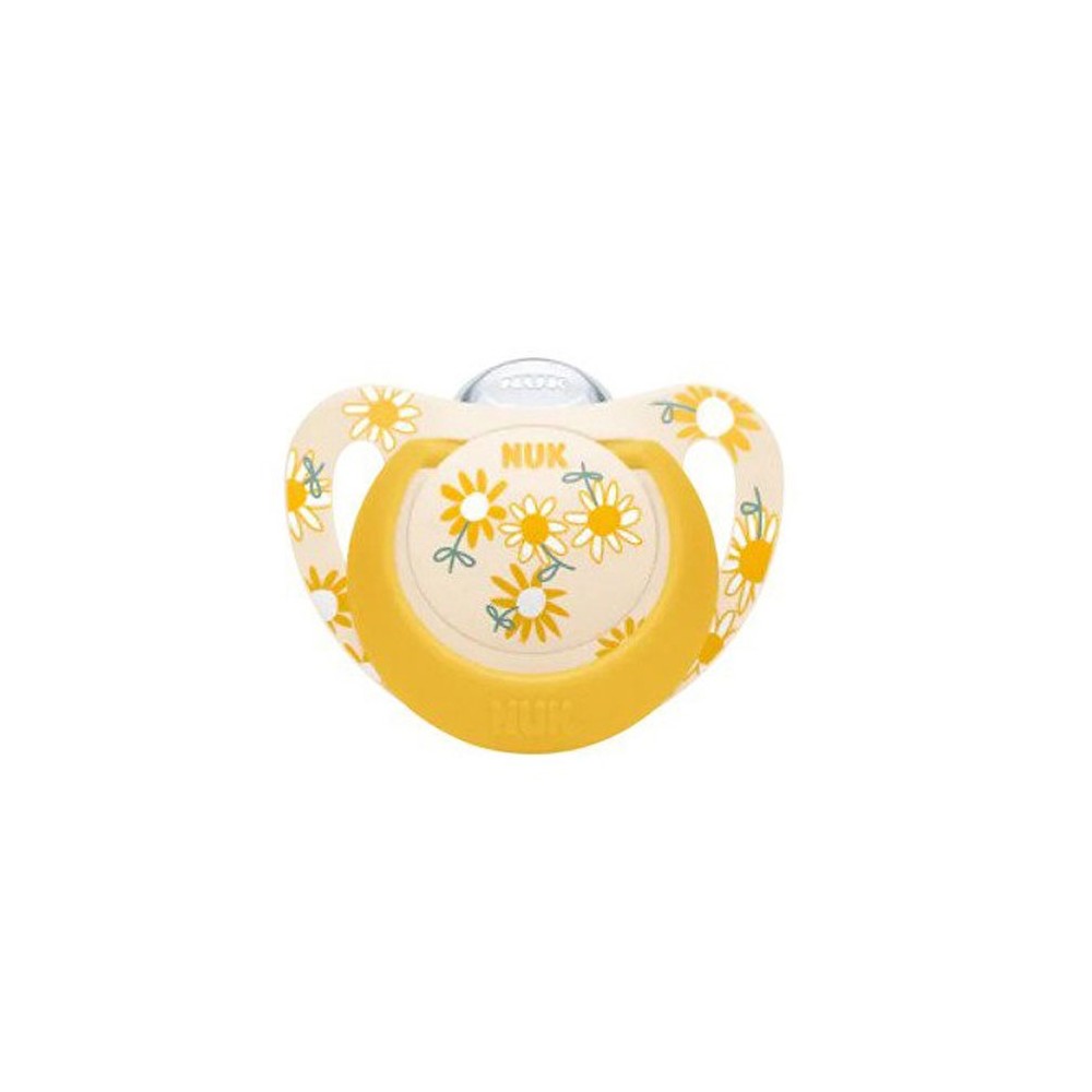 Πιπίλα της εταιρείας Nuk με θηλή από σιλικόνη, υλικό εύκαμπτο και ανθεκτικό στο χρόνο που αντέχει στις ακραίες θερμοκρασίες. Τέλος, διαθέτει θήκη για την προστασία της απο μικρόβια. Πριν από κάθε χρήση, καθαρίστε τη θήκη με νερό και ήπιο απορρυπαντικό. Μπορείτε ακόμη να χρησιμοποιήσετε ένα μαλακό σφουγγάρι. Ξεπλύνετε καλά και στεγνώστε.
