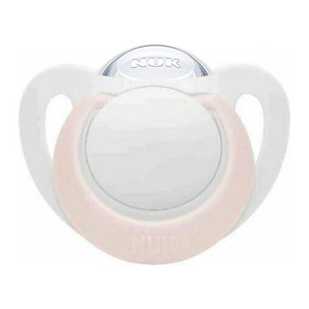Ορθοδοντική πιπίλα της εταιρείας Nuk με θηλή από σιλικόνη, υλικό εύκαμπτο και ανθεκτικό στο χρόνο που αντέχει στις ακραίες θερμοκρασίες.