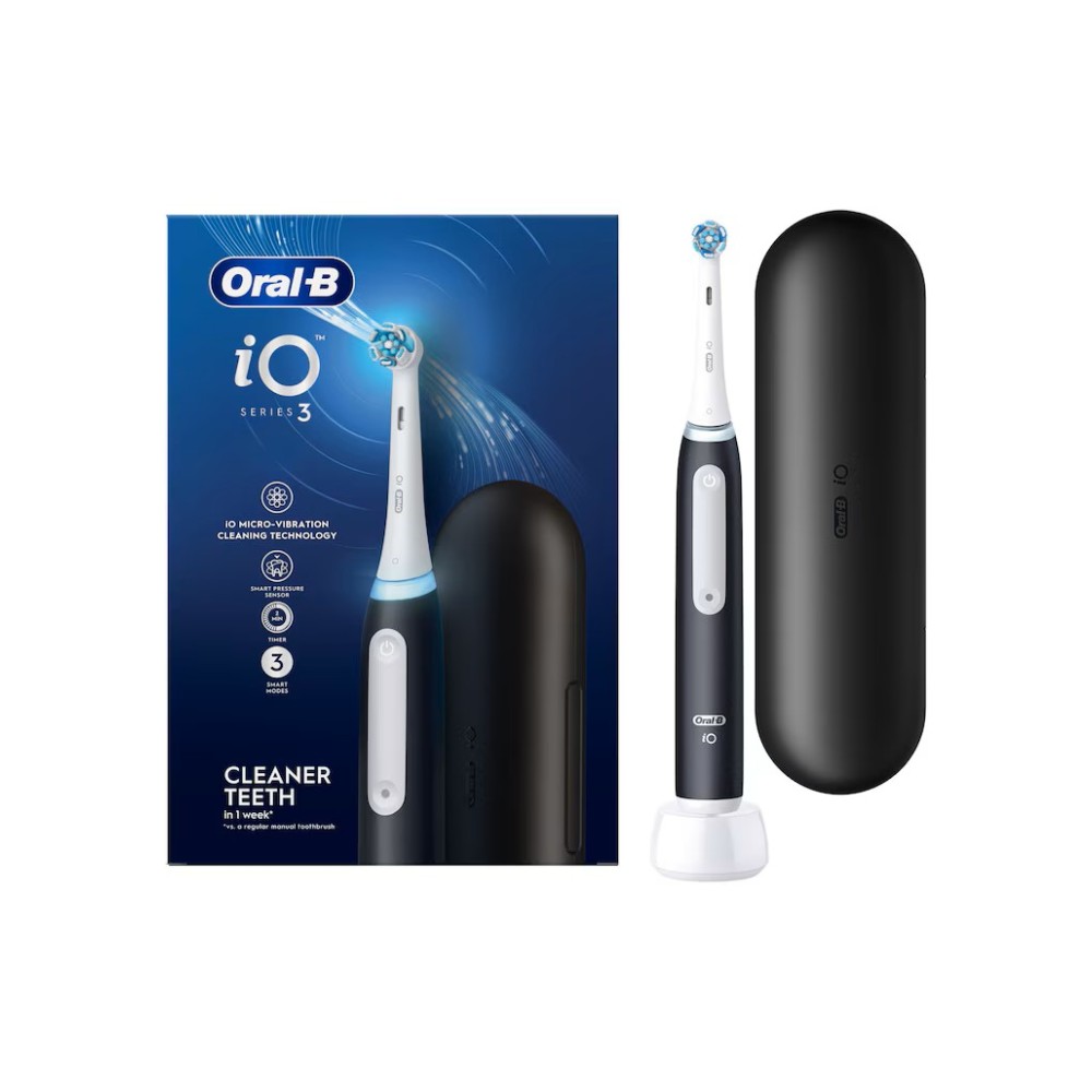 Oral-B iO Series 3 Micro Vibration Electric Toothbrush Matt Black Ηλεκτρική Οδοντόβουρτσα με 3 Προγράμματα Καθαρισμού, Μικροδονήσεις & Αισθητήρα Πίεσης σε Μαύρο Ματ Χρώμα με Θήκη Ταξιδίου 1 Τεμάχιο