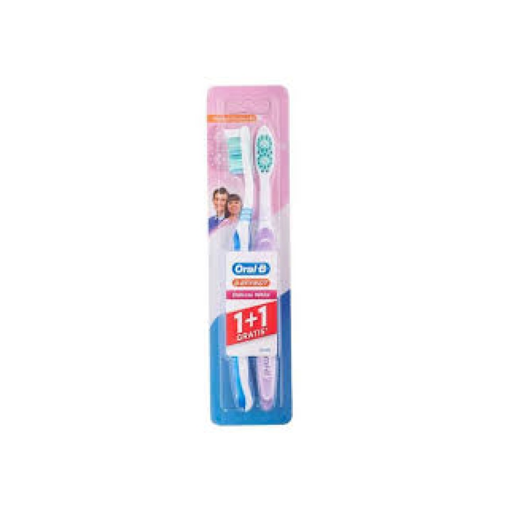 Η οδοντόβουρτσα Oral-B φροντίζει για την στοματική υγιεινή. Η οβάλ κεφαλή της φτάνει επίσης στα άκρα των δοντιών και τα καθαρίζει. Οι ειδικές ίνες της, μέτριας σκληρότητας, διεισδύουν βαθιά στα μεσοδόντια διαστήματα και απομακρύνουν τη συσσωρευμένη πλάκα και τα υπολείμματα τροφών. Οι τούφες γυαλίζουν απαλά τα δόντια και τους χαρίζουν μια φυσική λευκότητα. Η οδοντόβουρτσα έχει ειδικές μπλε τρίχες που ξεθωριάζουν με τη χρήση και έτσι σηματοδοτούν ότι είναι ώρα για αλλαγή.