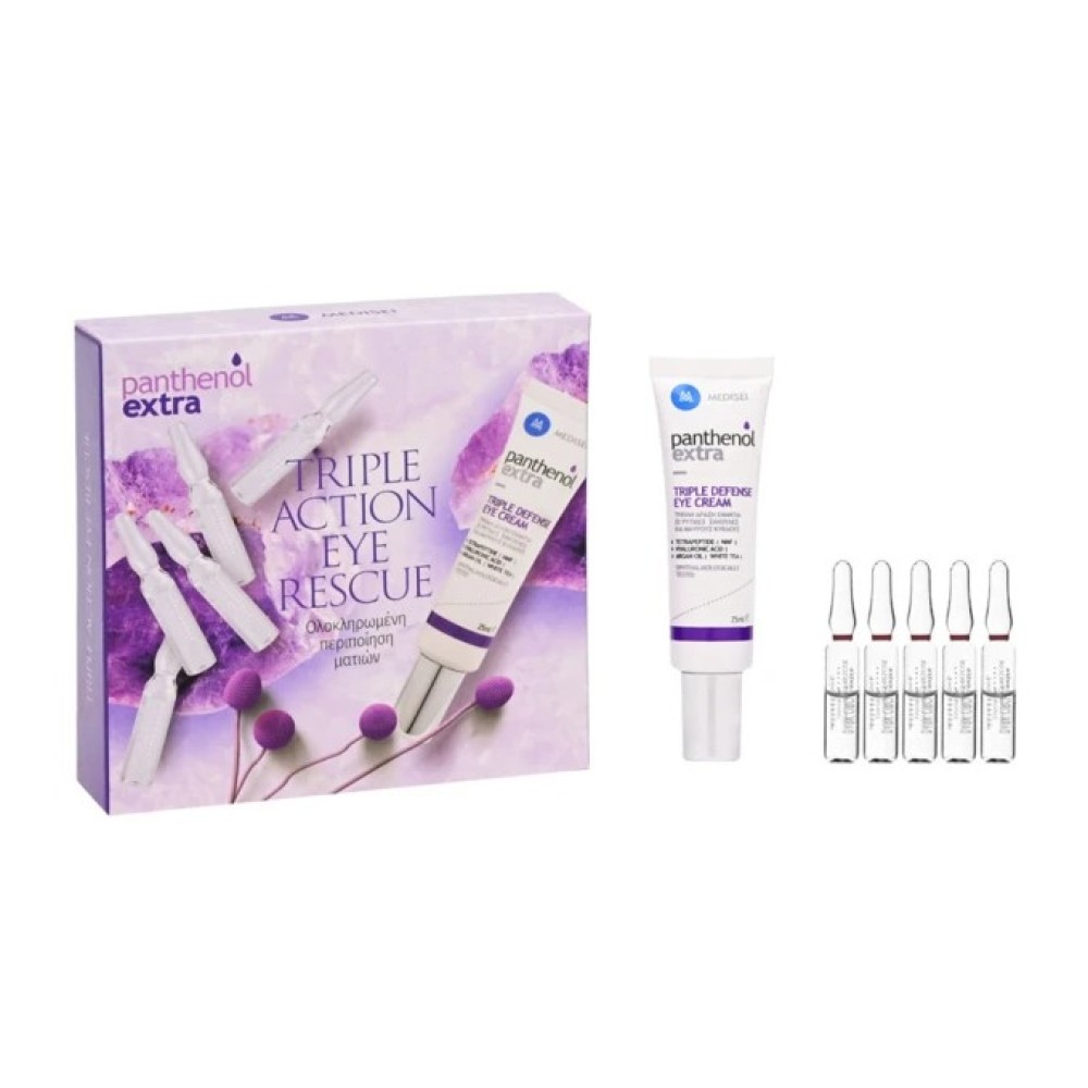 Panthenol Extra Πακέτο Περιποίησης Ματιών Triple Action Eye Rescue Triple Defense Κρέμα Ματιών 25ml & Dark Circles Rescue 5τμχ, 1σετ