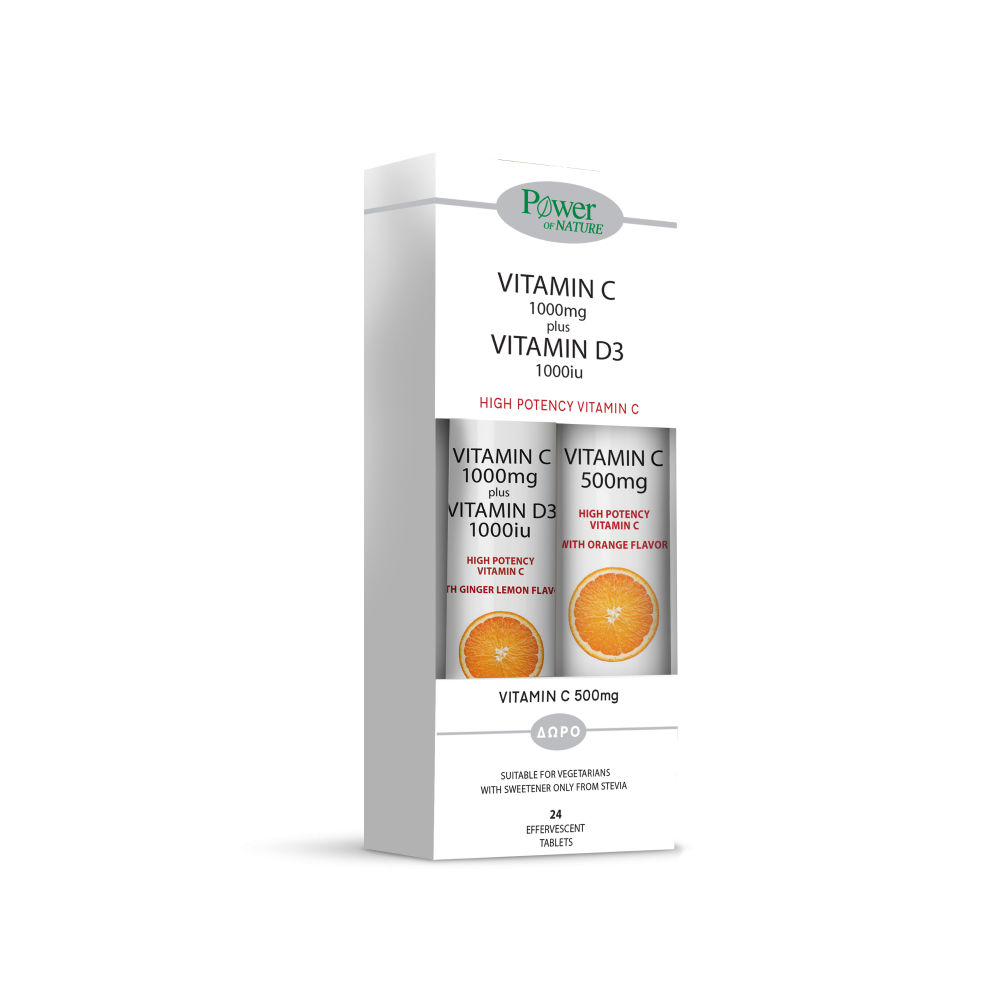 Power of Nature 1+1 με Βιταμίνη C 1000mg & Βιταμίνη D3 1000iu, 20eff.tabs & Βιταμίνη C 500mg, 20eff.tabs