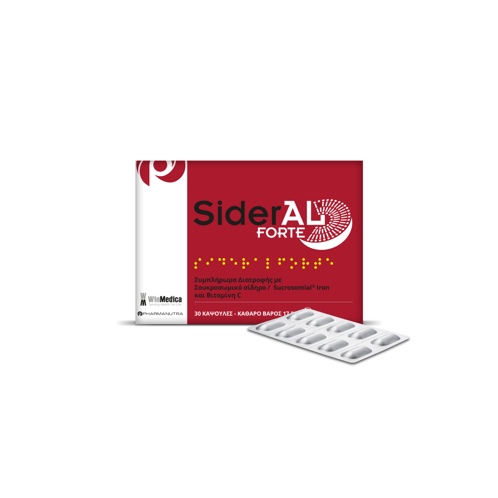 Το SiderAL® Forte ανήκει στα προϊόντα της οικογένειας SiderAL® και αποτελεί μία σημαντική εξέλιξη στην αντιμετώπιση της έλλειψης σιδήρου γιατί χρησιμοποιεί τη σουκροσωμικη τεχνολογία, μία βραβευμένη και καινοτόμα τεχνολογία, για τη μεταφορά και απόδοση του σιδήρου στον οργανισμό.