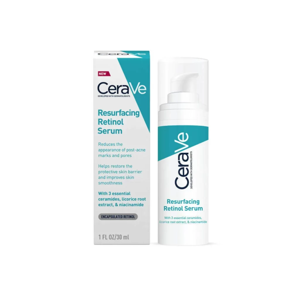 Το Resurfucing Retinol Serum της CeraVe είναι ένας ορός περιποίησης προσώπου με ενθυλακωμένη ρετινόλη, εκχύλισμα ρίζας γλυκόριζας, νιασιναμίδη και ceramides, για πιο λεία, πιο φωτεινή και πιο ομοιόμορφη επιδερμίδα μετά από ακμή. Μειώνει τα σημάδια ακμής και ελαχιστοποιεί την όψη των πόρων βελτιώνοντας και λειαίνοντας την επιδερμίδα.