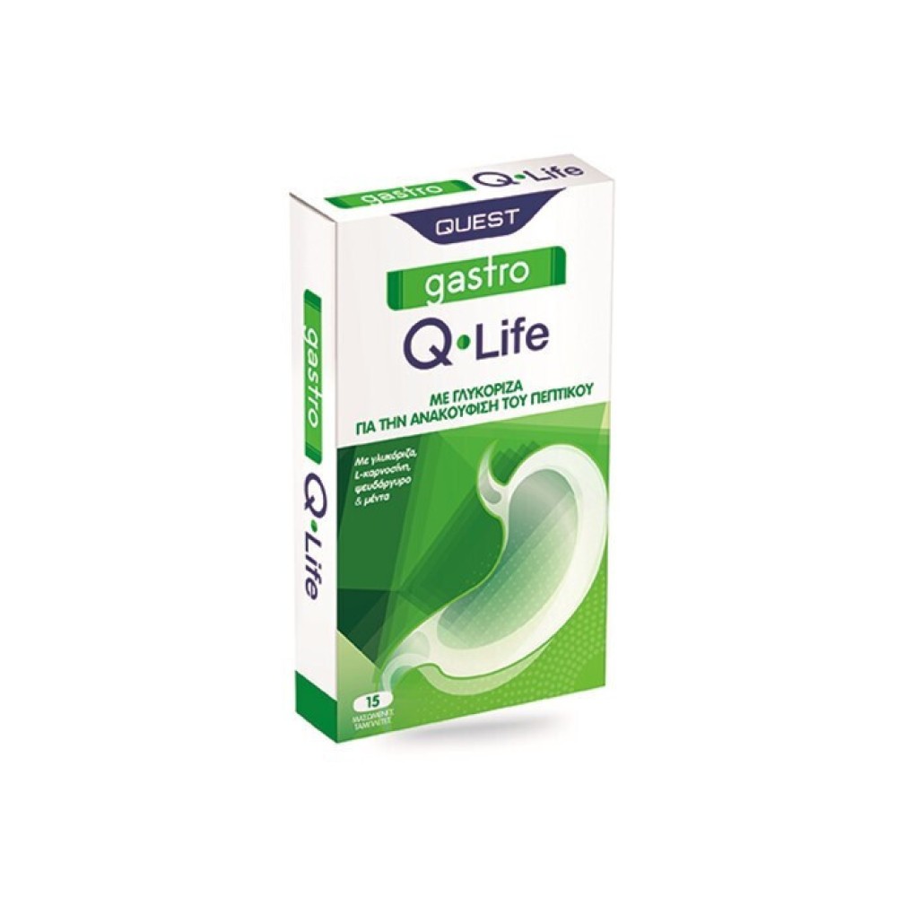 Quest Gastro Q-Life Συμπλήρωμα Διατροφής Για Την Ανακούφιση Του Πεπτικού Συστήματος 15 Μασώμενες Ταμπλέτες