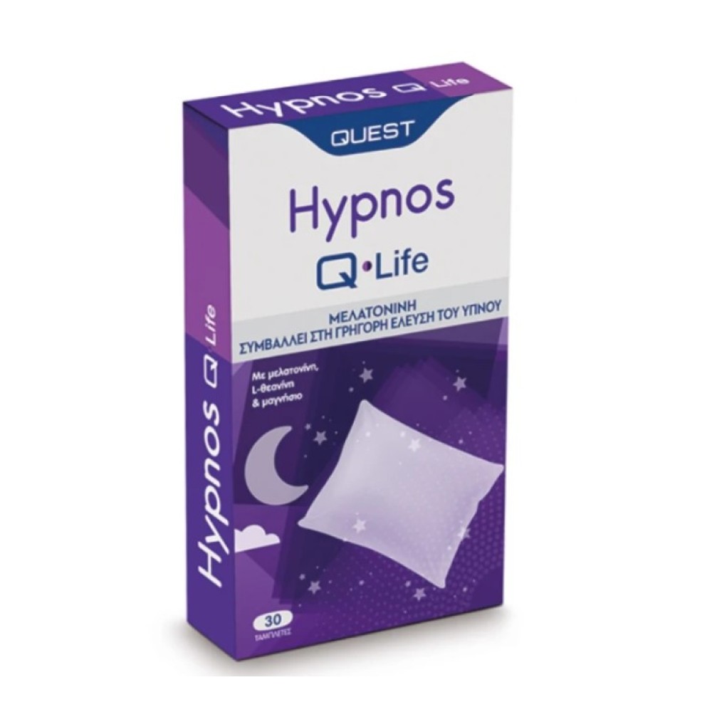 Το Hypnos Q-Life είναι ένας καινοτόμος συνδυασμός συστατικών για πιο γρήγορο ύπνο, με μελατονίνη, μαγνήσιο και L-θεανίνη.