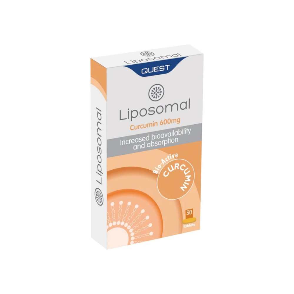 Το Liposomal Curcumin 600mg της Quest παρέχει στον οργανισμό λιποσωμική κουρκουμίνη, δηλαδή κουρκουμίνη ενσωματωμένη σε λιποσώματα.