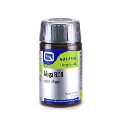Το συμπλήρωμα διατροφής Mega B50 quick release της Quest περιέχει σύμπλεγμα βιταμινών Β, οι οποίες ενισχύουν την απελευθέρωση ενέργειας από την τροφή και μπορεί να ελαττώσουν την κόπωση και να υποστηρίξουν την αυτοσυγκέντρωση και τη μνήμη. Επίσης, το σύμπλεγμα βιταμινών Β απαιτείται για ένα υγιές νευρικό σύστημα. Το φυλλικό οξύ, η Β6 και η Β12 εμπλέκονται στην παραγωγή αίματος. Δίαιτες πλούσιες σε υδατάνθρακες και έντονη φυσική δραστηριότητα αυξάνουν τις απαιτήσεις σε βιταμίνες B.