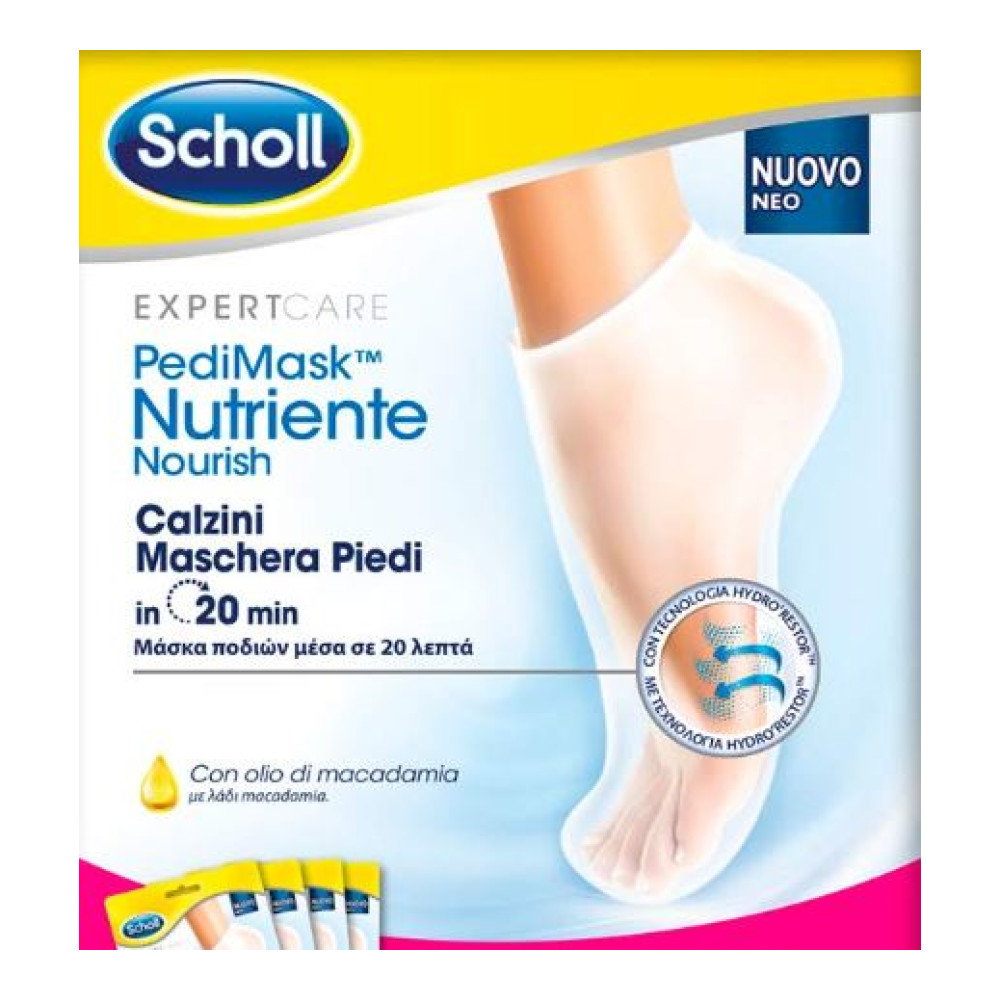 Οι ειδικοί στην περιποίηση και φροντίδα των ποδιών της Scholl σας φέρνουν μια ειδικά σχεδιασμένη μάσκα για να ενυδατώνει το ξηρό δέρμα στα πόδια σας: - Απαλά και μαλακά πόδια σε μόνο 20 λεπτά - Δίνει έντονη θρέψη - Παρέχει μακράς διάρκειας αίσθηση ενυδάτωσης - Εύκολη στη χρήση, μη λιπαρή. Προιόν μίας χρήσης. Κάθε πακέτο περιέχει 1 ζευγάρι ειδικά καλτσάκια (μάσκες) ενυδάτωσης. Τέλειο για αυτόνομη χρήση ή μετά την αφαίρεση σκληρού δέρματος με την ηλεκτρική λίμα Velvet Smooth