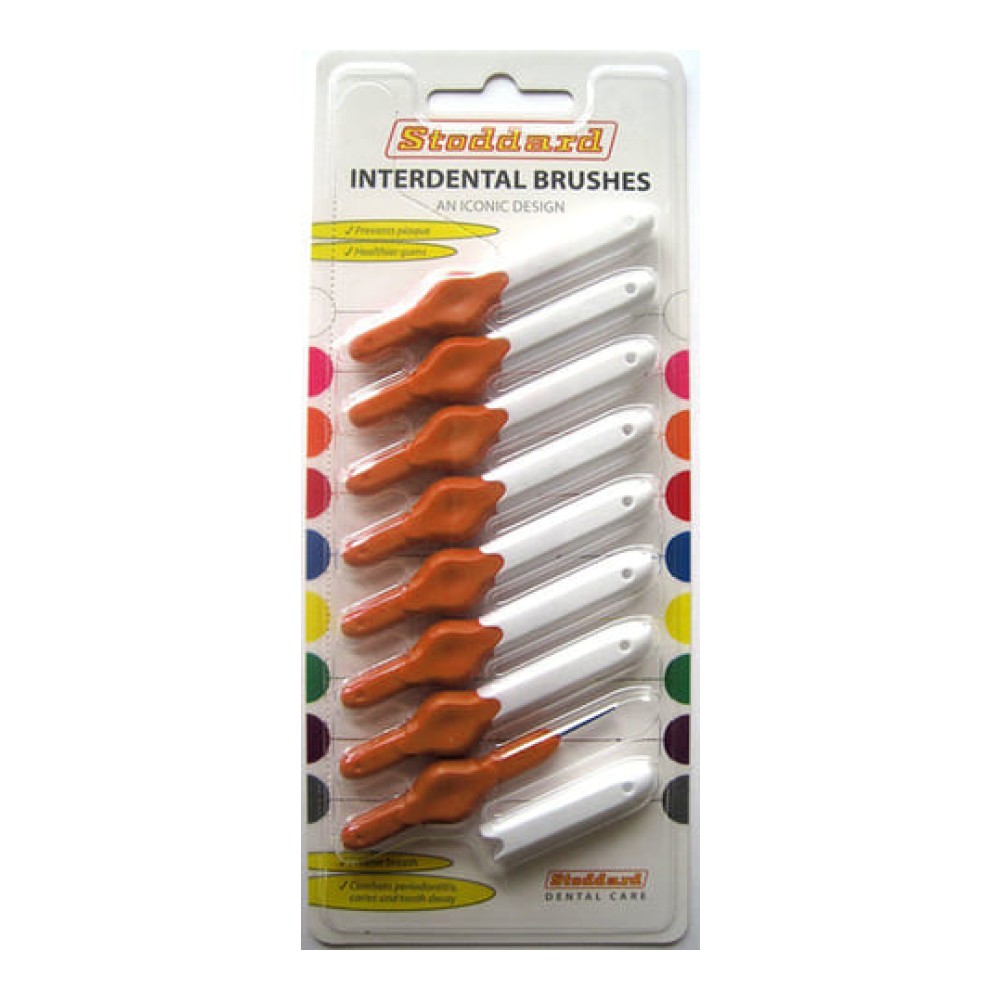Τα μεσοδόντια βουρτσάκια της Stoddard έχουν εργονομική λαβή που τα καθιστά πιο εύχρηστα και πρακτικά. Κάθε συσκευασία περιλαμβάνει 8 μεσοδόντια βουρτσάκια stoddard το καθένα με το καπάκι που χρησιμοποιείται για να προστατεύει το βουρτσάκι αλλά και για να επιμηκύνει τη λαβή. Είναι διαθέσιμα σε 8 χρωματικούς κωδικούς - μεγέθη .