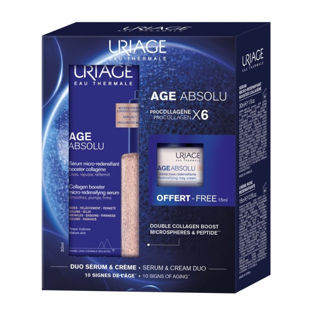 Uriage Promo Age Absolu Boosting Micro-Redensifying Ορός Αντιγήρανσης, 30ml & Δώρο Redensifying Rosy Αντιγηραντική Κρέμα Ημέρας, 15ml, 1σετ