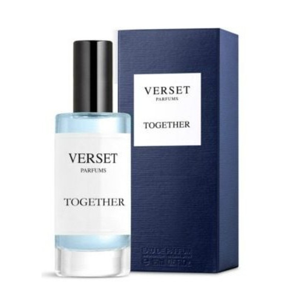 Η Verset Parfums δημιούργησε μια συλλογή αρωμάτων σχεδιασμένα σύμφωνα με τις τελευταίες εξελίξεις της αρωματοποιίας, έτσι ώστε να καλύψει τις τρέχουσες ανάγκες της αγοράς. Η Verset Parfums έχει ενσωματώσει αποστάγματα τελευταίας γενιάς με απώτερο στόχο τη δημιουργία αρωμάτων που εξασφαλίζουν μια αξεπέραστη οσφρητική εμπειρία. Tο ολοκαίνουριο άρωμα Together είναι ένα άρωμα για έναν αμείλικτο και σαγηνευτικό άνθρωπο. Θυμίζει έντονα το…Pure XS του Paco Rabanne.