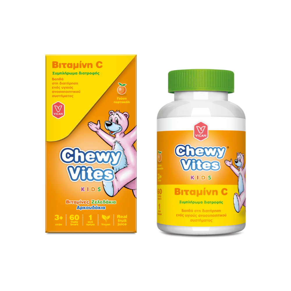 Μασώμενες βιταμίνες σε μορφή ζελεδάκια - αρκουδάκια, φτιαγμένα ειδικά για τα παιδιά με βιταμίνη C. Με φυσικό χυμό φρούτων, χωρίς ζάχαρη, γλουτένη και τεχνητά χρώματα.Χάρη στο σχήμα και τη γεύση τους τα παιδιά τις καταναλώνουν πολύ ευκολότερα απο τις κοινές βιταμίνες ενώ ταυτόχρονα συμβάλλουν στην άμυνα του παιδικού οργανισμού ιδιαίτερα κατά τους χειμερινούς μήνες που τα παιδιά διατρέχουν μεγαλύτερο κίνδυνο κρυολογήματος και γρίπης.