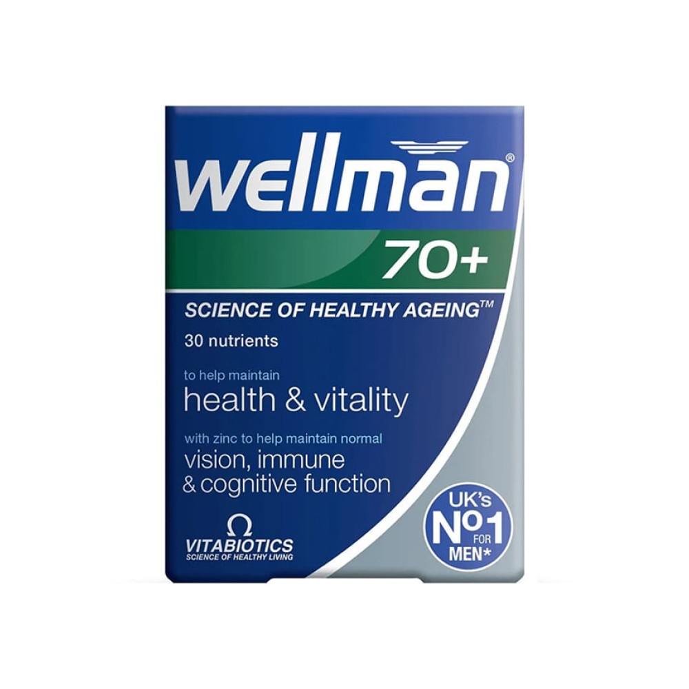 Το Wellman 70+ προσφέρει μοναδική υποστήριξη για άνδρες αυτής της ηλικιακής ομάδας και αποτελεί μέρος της σειράς Vitabiotics Wellman, της κορυφαίας μάρκας συμπληρωμάτων διατροφής για άνδρες στο Ηνωμένο Βασίλειο.