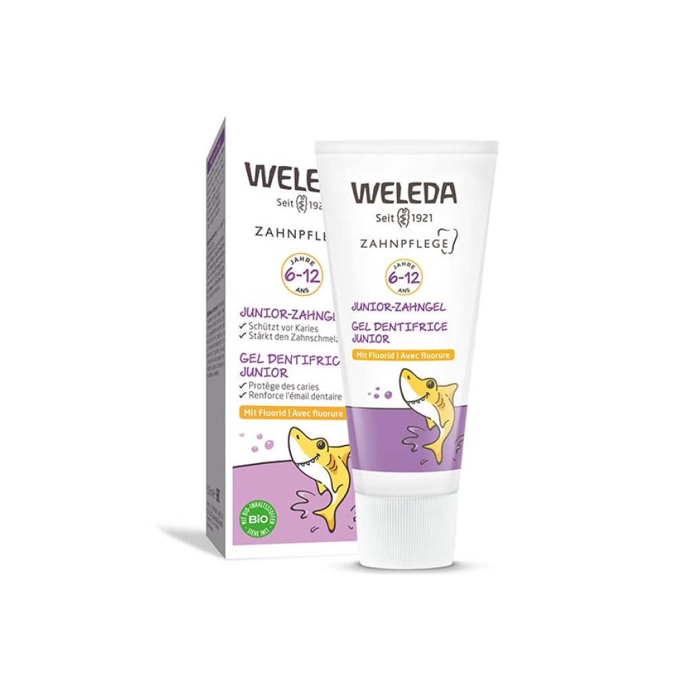 Παιδική οδοντόκρεμα Junior με κατάλληλη περιεκτικότητα σε φθόριο για τα παιδικά δόντια και με φυσικά ήπια γεύση*.